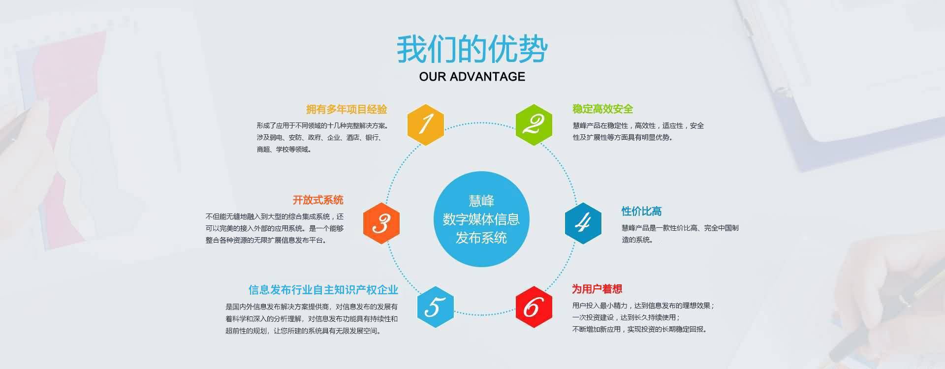公司本著互惠互利,誠實(shí)信用的原則,真誠面對用戶,并愿與社會(huì)各界展開廣泛的合作。 公司現(xiàn)已是國內(nèi)的數(shù)字媒體信息發(fā)布系統(tǒng)解決方案提供商,產(chǎn)品涉及大中型企業(yè)、商業(yè)地產(chǎn)、各級(jí)黨政機(jī)關(guān)、軍隊(duì)、司法、信息通信、金融、醫(yī)療、教育、能源交通、公用事業(yè)領(lǐng)域。